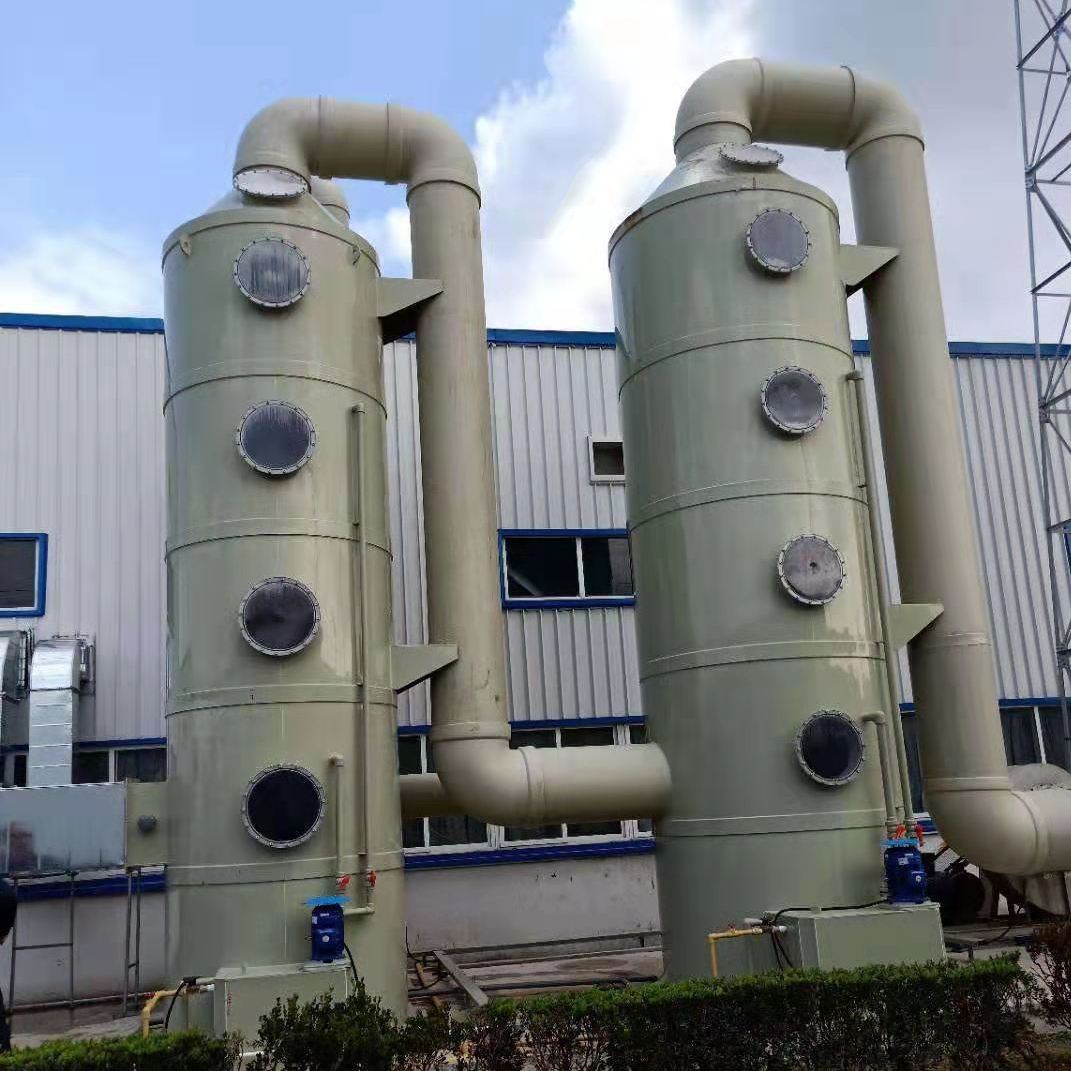 有機廢氣(VOCs)普遍采用活性炭吸(xī)附處理法、催化燃燒(shāo)法、催化氧化法、酸堿中和法、等離子法(fǎ)等多種原理。這是就需要(yào)噴(pēn)淋塔設備通過集氣罩收集有機廢氣,通過管道(dào)把廢氣傳到噴淋塔內部,廢氣中所(suǒ)含有的容(róng)易產生(shēng)惡臭味的氣體成份充分與酸性(堿性)水霧接觸混合並且發生中和反應,形成較好的氣液兩相交和(hé)。經過噴淋後的水霧再在洗滌塔內的填料層內形成一(yī)個多孔接觸麵較大的處理(lǐ)層(céng),進一步的對有機廢氣進行治理。